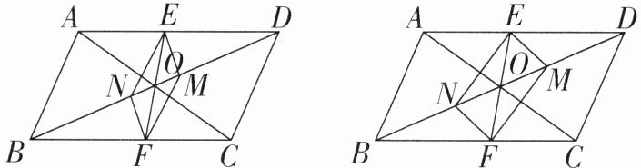 ∴MO=NO.由对角线互相平分可知四边形EMFN为平行四边形;