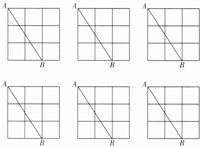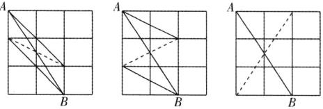 9. 如图,在$ 3×3 $的正方形网格中,以线段AB为对角线作平行四边形,使另外两个顶点也在格点上,则这样的平行四边形最多可以画