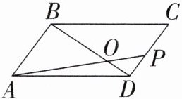 5. (2025·长春期中)如图,在$□ ABCD$中,$AB = 3\ \mathrm{cm}$,$AD = 5\ \mathrm{cm}$,$BD = 4\ \mathrm{cm}$,动点$P$从点$D$出发,以$4\ \mathrm{cm/s}$的速度沿折线$DC - CB - BD$运动,连接$AP$交$BD$于点$O$,设点$P$的运动时间为$t\ \mathrm{s}$.