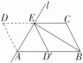 3. (扬州中考)如图,将$□ ABCD$沿过点$A$的直线$l$折叠,使点$D$落到$AB$边上的点$D'$处,折痕$l$交$CD$边于点$E$,连接$BE$.
