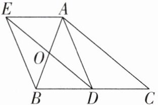 5. (2025·青海中考)如图,在 $△ ABC$ 中,点 $O$,$D$ 分别是边 $AB$,$BC$ 的中点,过点 $A$ 作 $AE // BC$ 交 $DO$ 的延长线于点 $E$,连接 $AD$,$BE$。