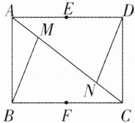 11. (大庆中考)如图,在矩形 $ABCD$ 中,$AB = 3$,$BC = 4$,$M$,$N$ 在对角线 $AC$ 上,且 $AM = CN$,$E$,$F$ 分别是 $AD$,$BC$ 的中点。