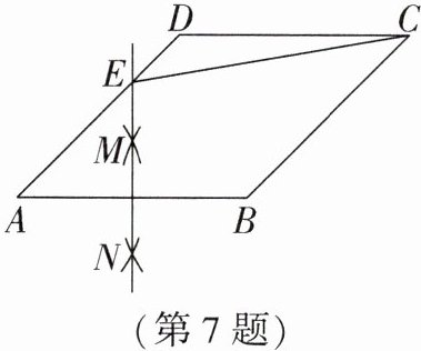7. (2025·济南期末)如图,在边长为 $2$ 的菱形 $ABCD$ 中,分别以点 $A$,$B$ 为圆心,以大于 $\dfrac{1}{2}AB$ 的长为半径作弧,两弧相交于点 $M$,$N$,作直线 $MN$,交 $AD$ 于点 $E$,连接 $CE$,若 $∠ B = 135^{\circ}$,则 $CE$ 的长为(