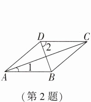 2. (湖南中考)如图,菱形 $ABCD$ 中,连接 $AC$,$BD$,若 $∠ 1 = 20^{\circ}$,则 $∠ 2$ 的度数为(