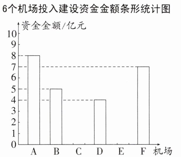 ∴机场C投入的建设资金金额为2亿元,则机场E投入的建设资金金额为4亿元.补全条形统计图如下: