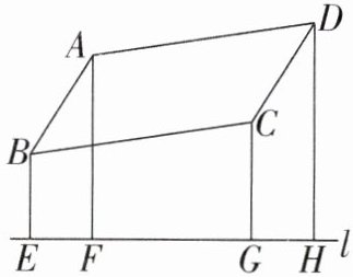 4. 如图,直线 $l$ 为 $□ ABCD$ 外的任意一条直线,过 $A$,$B$,$C$,$D$ 分别作直线 $l$ 的垂线段 $BE$,$AF$,$CG$,$DH$,请探索线段 $BE$,$AF$,$CG$,$DH$ 之间的数量关系,并说明理由.