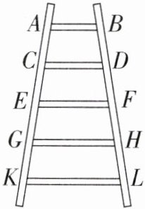 3. 一把梯子如图所示,其中四边形 $AKLB$ 是梯形. 已知 $AC = CE = EG = GK$,$BD = DF = FH = HL$,$AB = 0.5\ \mathrm{m}$,$GH = 0.74\ \mathrm{m}$,求 $CD$,$EF$ 的长.