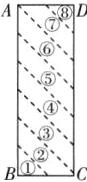@@(2)设图形由左下向右上折叠,将图形分为$8$个区域,共需折叠$7$次,如图。折叠$1$次后,①、②区域形成的图形为等腰梯形,面积为$\frac{1}{2}×10×10 - \frac{1}{2}×5×5 = \frac{75}{2}(\mathrm{cm}^{2})$;折叠$2$次后,①—③区域形成的图形为平行四边形,相比于折叠$1$次时新增了一个等腰直角三角形,面积变为$\frac{75}{2} + \frac{1}{2}×5×5 = 50(\mathrm{cm}^{2})$;折叠$3$次后,①—④区域形成的图形为等腰梯形,面积变为$50 + \frac{1}{2}×5×5 = \frac{125}{2}(\mathrm{cm}^{2})$;折叠$4$次后,①—⑤区域形成的图形为平行四边形,面积变为$\frac{125}{2} + \frac{1}{2}×5×5 = 75(\mathrm{cm}^{2})$;折叠$5$次后,①—⑥区域形成的图形为等腰梯形,面积变为$75 + \frac{1}{2}×5×5 = \frac{175}{2}(\mathrm{cm}^{2})$;折叠$6,7$次后,区域⑦,⑧被原本的折叠图形覆盖,图形无变化,仍为等腰梯形,面积为$\frac{175}{2}\mathrm{cm}^{2}$。原本的矩形面积为$10×30 = 300(\mathrm{cm}^{2})$,$300 - \frac{175}{2} = \frac{425}{2}(\mathrm{cm}^{2})$。故折叠后多面重叠形成的四边形是等腰梯形,相比于原本的矩形,面积缩小了$\frac{425}{2}\mathrm{cm}^{2}$。