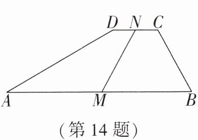 14. 如图,在梯形ABCD中,AB // CD,∠A + ∠B = 90°,CD = 7,MN = 11,点M,N分别为AB,CD的中点,则线段AB =
