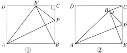 当∠BB'C = 90°时,如图②所示.根据折叠可知 BP = B'P,