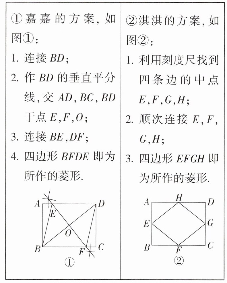 (2)①嘉嘉的方案:四边形 BFDE 为菱形,理由如下: