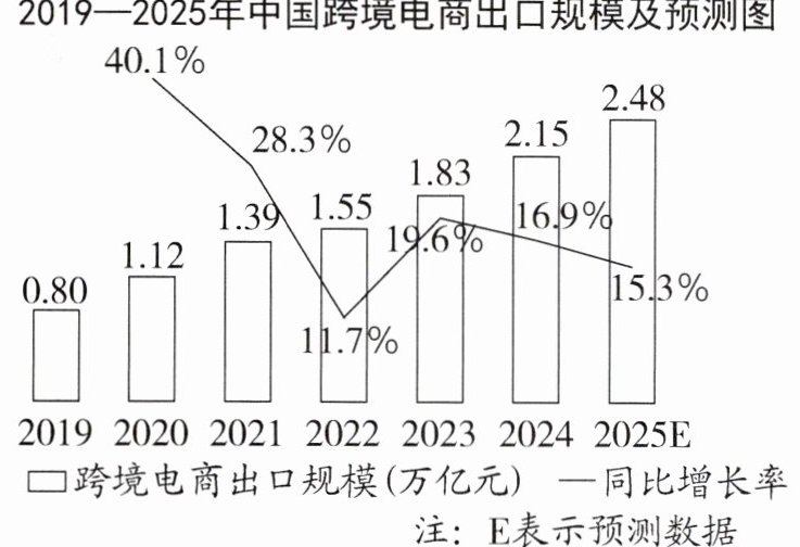 (3)2020 2019 - 2025年中国跨境电商出口规模逐步增长(合理即可)