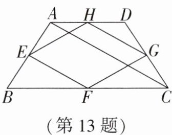 13. 某花木场有一块等腰梯形的空地ABCD(如图),各边的中点分别是E,F,G,H,用篱笆围成的四边形EFGH场地的周长为40cm,则对角线AC=