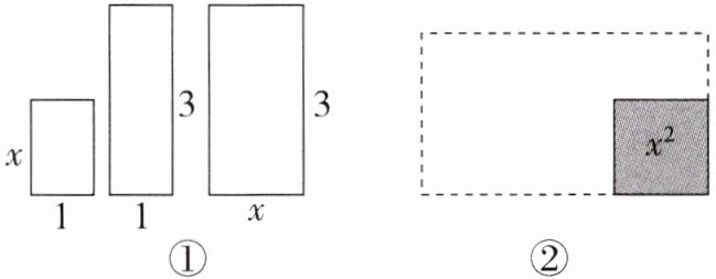 5. 把图①中的三个小长方形与图②中的正方形拼成一个较大的长方形(在图②中画出).根据拼图,写出一个多项式的因式分解.