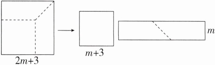 答案:10. $3m + 6$ 解析:由题意,$(2m + 3)^{2} - (m + 3)^{2} = [(2m + 3) + (m + 3)]·[(2m + 3) - (m + 3)] = m·(3m + 6)$,因为拼成的长方形一边长为$m$,则另一边长为$3m + 6$.
