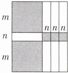 16. 如图,将一块长方形纸板裁剪成十二块,其中有两块是边长都为$m$的大正方形,三块是边长都为$n$的小正方形,七块是长为$m$,宽为$n$的完全相同的小长方形。观察图形,可以发现代数式$2m^2 + 7mn + 3n^2$可以因式分解为$2m^2 + 7mn + 3n^2 =$
