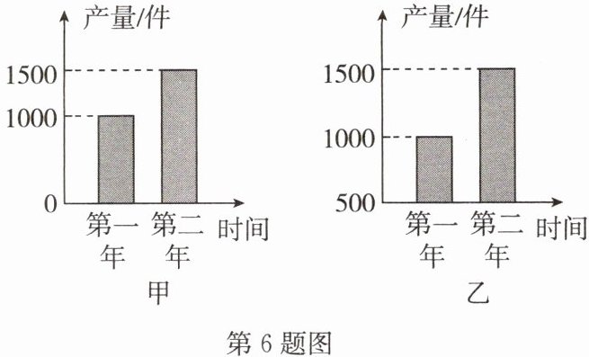 6. 某公司两个车间生产同一种产品,产量都从第一年的1000件增至第二年的1500件,可两个车间主任报送的统计图却不一样. 图中