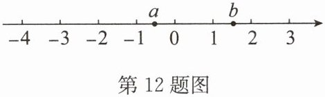 12. 实数$a$,$b$在数轴上的位置如图所示,化简$\vert a + 1\vert-\sqrt{(b - 1)^{2}}+\sqrt{(a - b)^{2}}=$