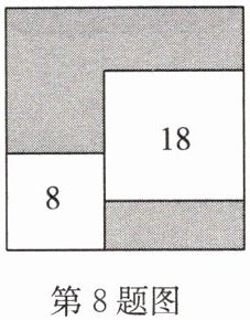 8. 如图,从一个大正方形中截去面积分别为 8 和 18 的两个小正方形,则图中阴影部分的面积为 (
