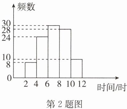 2. 为了解某校学生“五一”期间参加社团活动时间的情况,随机抽查了其中100名学生进行统计,并绘制成如图所示的频数分布直方图.已知该校共有1000名学生,据此估计,该校“五一”期间参加社团活动时间在8~12小时之间的学生人数是(