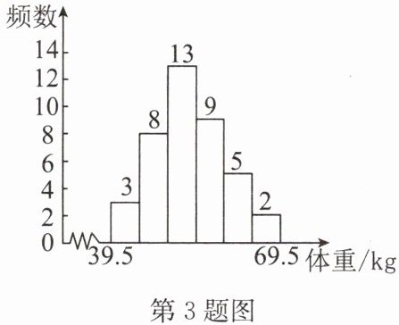 3. 某班40名学生体重的频数分布直方图(不完整)如图所示,组距为