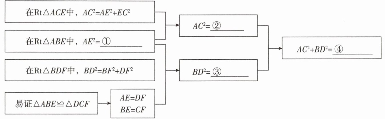 如图①,过点 $A$,$D$ 分别作 $AE⊥ BC$,$DF⊥ BC$,垂足为 $E$,$F$.设 $AB = x$,$BC = y$,$BE = z$.证明途径可以用下面的框图表示,请填写其中的空格.(用含 $x$,$y$,$z$ 的代数式表示)