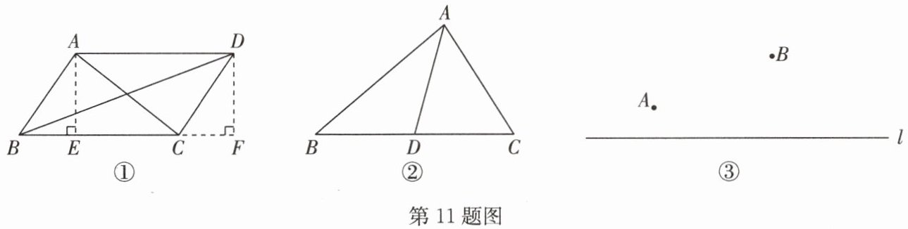 (2)如图②,在 $△ ABC$ 中,$AD$ 是 $BC$ 边上的中线.