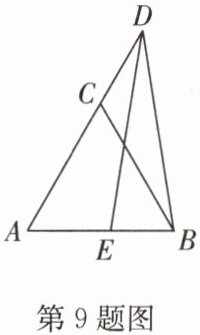 9. 如图,$D$是等边三角形$ABC$中$AC$边延长线上的一点,连接$BD$,$E$是$AB$上的一点,且$DE = DB$,若$AD + AE = 5\sqrt{3}$,$BE = \sqrt{3}$,则$BC =$