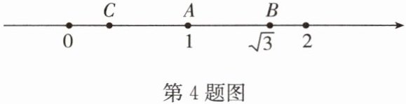 4. 如图,在数轴上表示$1$,$\sqrt{3}$的点分别为$A$,$B$,点$B$关于点$A$的对称点为$C$,则点$C$所表示的数是(