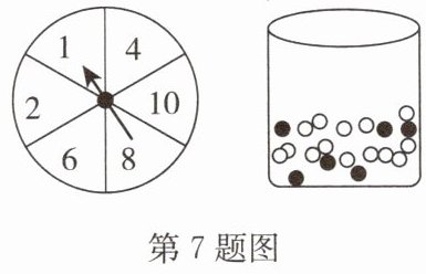 7. 有一个摊位游戏,先旋转一个转盘的指针,如果指针箭头停在奇数的位置,玩的人可以从袋子里抽出一个弹珠,当摸到黑色的弹珠就能得到奖品,转盘和弹珠如图所示,小明玩了一次这个游戏,则小明得奖的概率为(