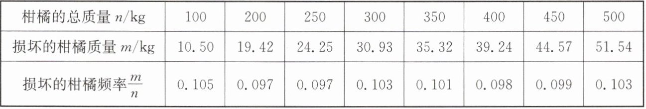 5. (2024·玄武区期末)柑橘在运输、存储中会有损坏,现从某批柑橘中随机抽取若干柑橘,进行“柑橘损坏率”统计,并把获得的数据记录如下: