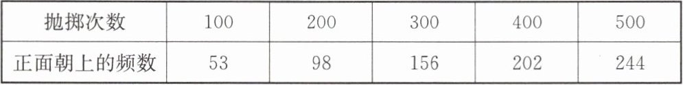 若抛掷硬币 1000 次,则“正面朝上”的频数最接近(