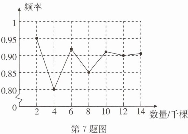 7. 某林业局将一种树苗移植成活的情况绘制成如图所示的折线统计图,由此可估计这种树苗移植成活的概率为