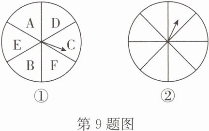 (2)小军希望转动转盘时,指针落在“A 南京博物院”区域的概率最大,同时又要让每个博物馆都有被选中的机会,于是设计了被等分成 8 个扇形的如图②所示的转盘,请按小军的要求在图②的扇形中填上代表各博物馆的字母,并求出指针落在“A 南京博物院”区域的概率.