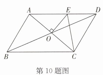 10. (2025·东港期末)如图,在 $□ ABCD$ 中,$O$ 是对角线 $AC$,$BD$ 的交点,过点 $O$ 作 $OE⊥ AC$ 交 $AD$ 于点 $E$,若 $∠ DEC = 80^{\circ}$,则 $∠ ACB$ 的度数为