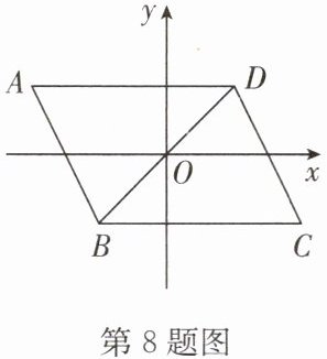 8. (2025·新邵县期末)如图,在平面直角坐标系中,原点 $O$ 为 $□ ABCD$ 对角线 $BD$ 的中点,$AD// x$ 轴,点 $B$ 的坐标为 $(-2,-2)$,$AD = 6$,则点 $A$ 的坐标为