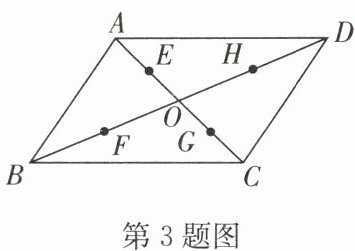 3. 如图,在$□ ABCD$中,$AC,BD$ 相交于点 $O,E,F,G,H$ 分别是 $AO,BO,CO,DO$ 的中点,那么以图中的点为顶点的平行四边形共有