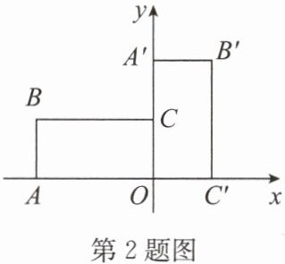 2. (2024·吉林)如图,在平面直角坐标系中,点 A 的坐标为(-4,0),点 C 的坐标为(0,2). 以 OA,OC 为边作矩形 OABC. 若将矩形 OABC 绕点 O 顺时针旋转 90°,得到矩形 OA'B'C',则点 B'的坐标为 (