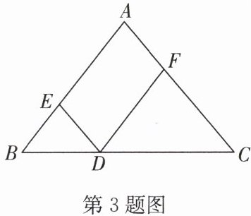 3. 如图,在$△ ABC$中,$AB = AC$,点 $D$ 在 $BC$ 边上,$DF// AB$,$DE// AC$,则当$∠ B=\_\_\_\_\_\_^{\circ}$时,四边形 $AEDF$ 是矩形。