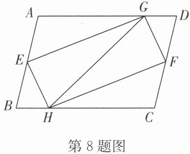 8. 如图,在平行四边形 $ABCD$ 中,$E$,$F$ 分别为 $AB$,$CD$ 的中点,点 $G$,$H$ 分别在边 $DA$,$BC$ 上,且 $AG = CH$。