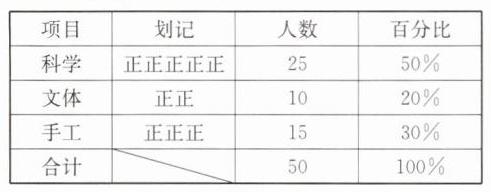 答:估计该校八年级480名学生参加“科学”“文体”“手工”三个课外兴趣小组的人数分别为240,96,144.