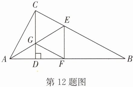 12. 如图,在$Rt△ ABC$中,$∠ ACB=90^{\circ}$,$AE$平分$∠ CAB$交$CB$于点$E$,$CD⊥ AB$于点$D$,交$AE$于点$G$,过点$G$作$GF// BC$交$AB$于点$F$,连接$EF$.