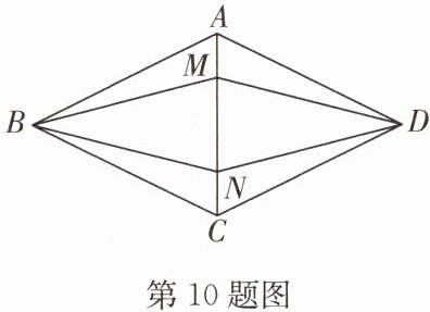 10. 如图,四边形$ABCD$是平行四边形,$BM// DN$,且分别交对角线$AC$于点$M$,$N$,连接$MD$,$BN$.