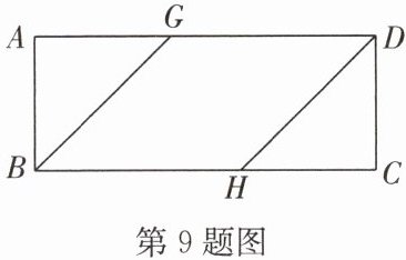 9. 如图,在矩形$ABCD$中,$AB=1$,$BG$,$DH$分别平分$∠ ABC$,$∠ ADC$,交$AD$,$BC$于点$G$,$H$. 要使四边形$BHDG$为菱形,则$AD$的长为