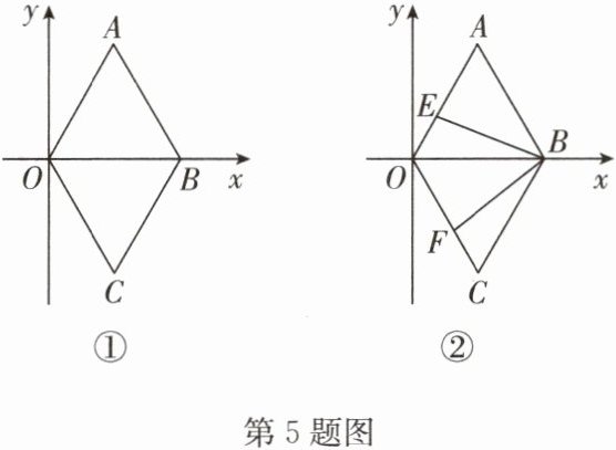 5. 如图①,四边形 $ OABC $ 是菱形,$ B(6,0) $,$ ∠ C = 60^{\circ} $.