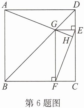 6. 如图,在正方形 $ABCD$ 中,$G$ 是对角线 $BD$ 上的一点(与点 $B$,$D$ 不重合),$GE ⊥ CD$,$GF ⊥ BC$,$E$,$F$ 为垂足。连接 $EF$,$AG$,延长 $AG$ 交 $EF$ 于点 $H$。