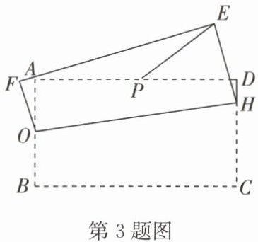 3. (2024·无锡新吴区) 如图, 在矩形 $ABCD$ 中, $AB = 2$, $BC = 4$, $O$, $P$ 分别是边 $AB$, $AD$ 的中点, $H$ 是边 $CD$ 上的一个动点, 连接 $OH$, 将四边形 $OBCH$ 沿 $OH$ 折叠, 得到四边形 $OFEH$, 连接 $PE$, 则 $PE$ 长的最小值是