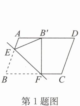 1. 如图, 有一张平行四边形纸片 $ABCD$, $AB = 5$, $AD = 7$, 将这张纸片折叠, 使得点 $B$ 落在边 $AD$ 上的点 $B'$ 处, 折痕为 $EF$, 若点 $E$ 在边 $AB$ 上, 则 $DB'$ 长的最小值等于