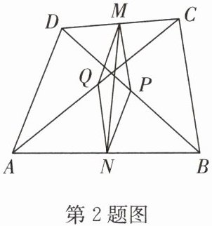 2. (1) 如图,在四边形ABCD中,AD=BC,P是对角线BD的中点,M是DC的中点,N是AB的中点. 求证:∠PMN=∠PNM;