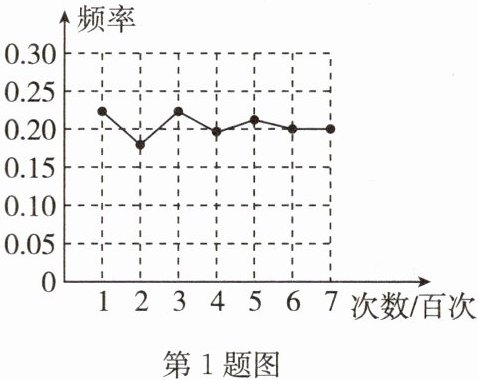 由图可知,频率稳定在$0.2$左右,与蓝色球概率$0.2$相符。